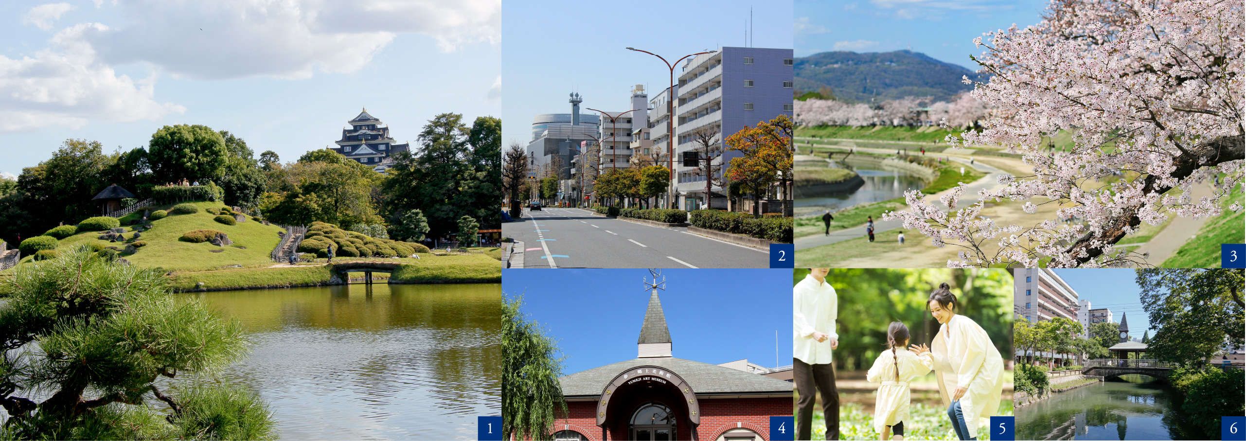 1.岡山後楽園 徒歩8分(現地より約610m)2.現地界隈3.旭川さくらみち 徒歩20分(現地より約1,580m) 4.夢二郷土美術館本館 徒歩7分(現地より約510m)5.image photo6.西川緑道公園 徒歩11分(現地より約860m)