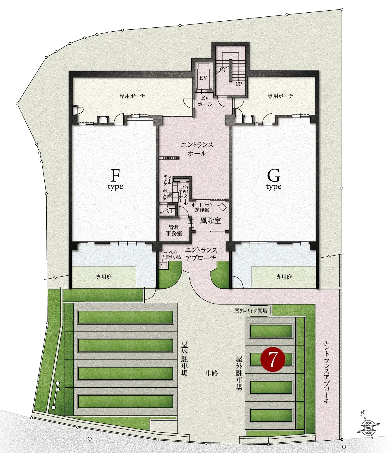 現地にお越しの場合は、見学客駐車スペース7区画に駐車ください。