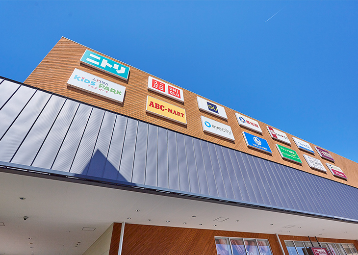 スーパーからファッション、インテリア、グルメ、スポーツ、クリニックなどが充実。