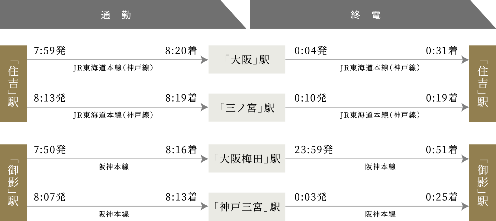 快速利用で「三ノ宮」駅へ直通2駅6分(日中平常時7分)、