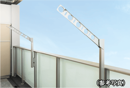 洗濯物の大きさに合わせて高さ調節のできるスライド式の物干金物を採用しました。※Ag・Bg・Cgタイプ除く。