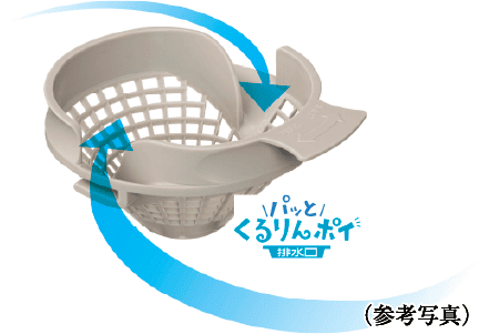 シャワーなどの排水時に渦を起こして、髪の毛やゴミをヘアキャッチャーの中央に「パッと」まとめる排水口。ゴミがまとまり、排水を妨げないので、汚れが付きにくくなります。