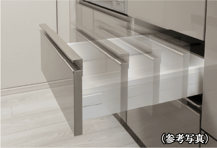 スライド式収納には、ゆっくりと静かに閉まるソフトクローズ設計を採用。(一部除く)
