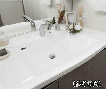 美しさが映える人造大理石仕様のボウル一体型洗面カウンター。継ぎ目がないのでお掃除がしやすく清潔感も保てます。