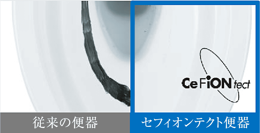 表面をナノレベルまでツルツルにした「セフィオンテクト」に加え、ミストをふきつけて表面に水のクッションをつくる「プレミスト」により汚れが付きにくく、落ちやすくなりました。