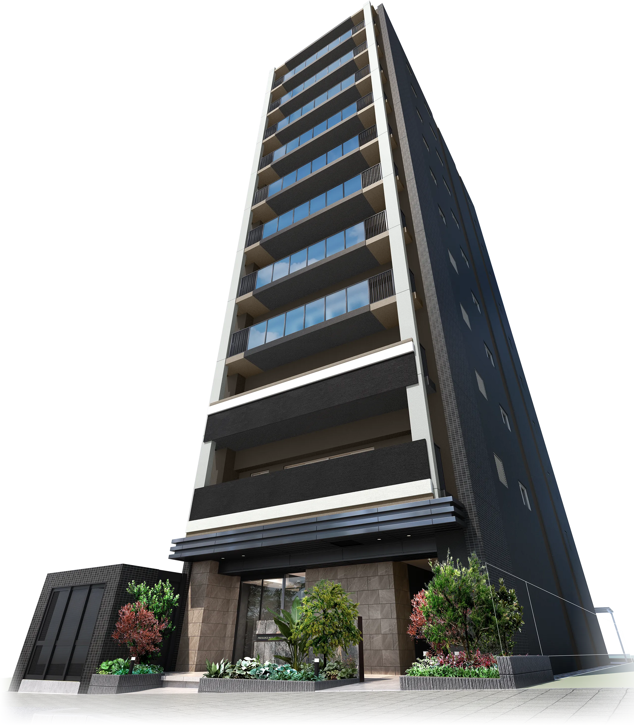 重厚な外壁タイルなどで、新しい感性を象徴。