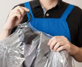 契約クリーニング会社が依頼物を引き取り、後日仕上がり品を宅配ボックスにお届けします。