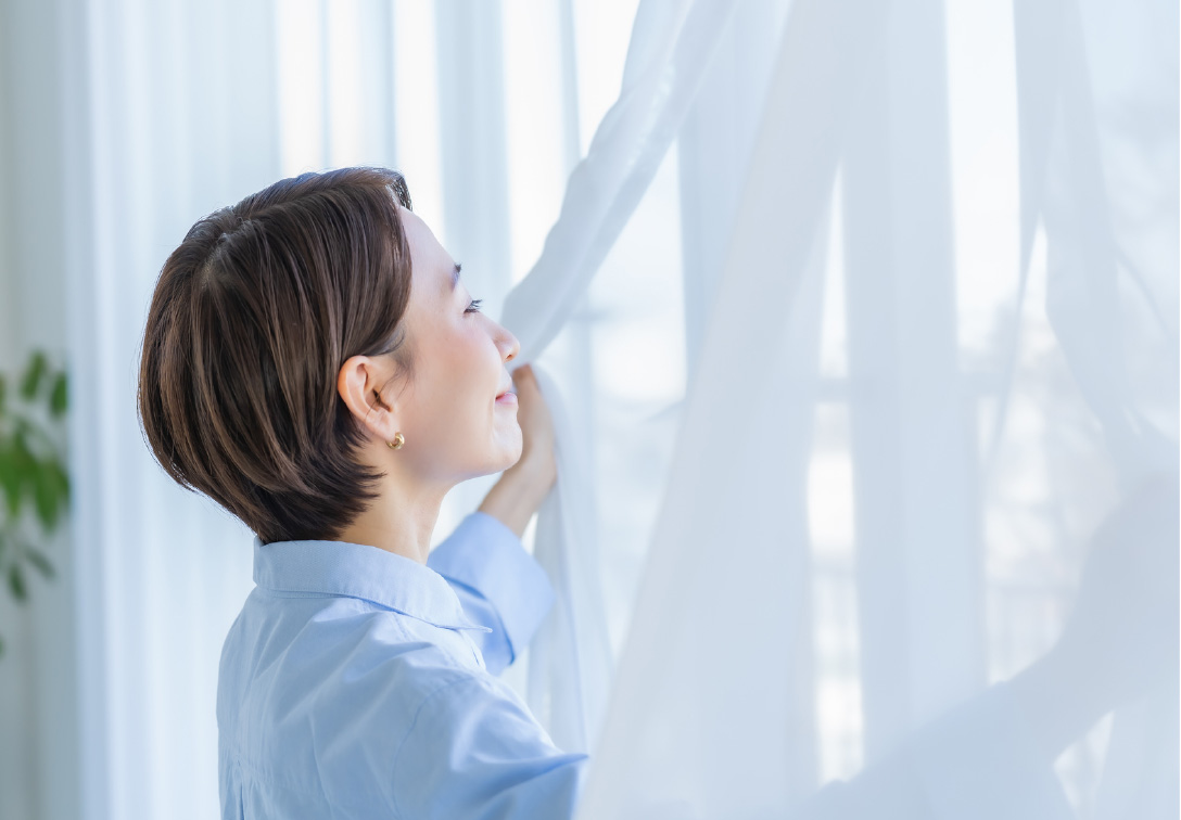 中住戸と比べて窓が多くとれる角住戸は、自然光が入って、風も通り抜ける心地よさがあります。一歩室内に入れば、明るく広がる空間が毎日を心地よく包み込みます。