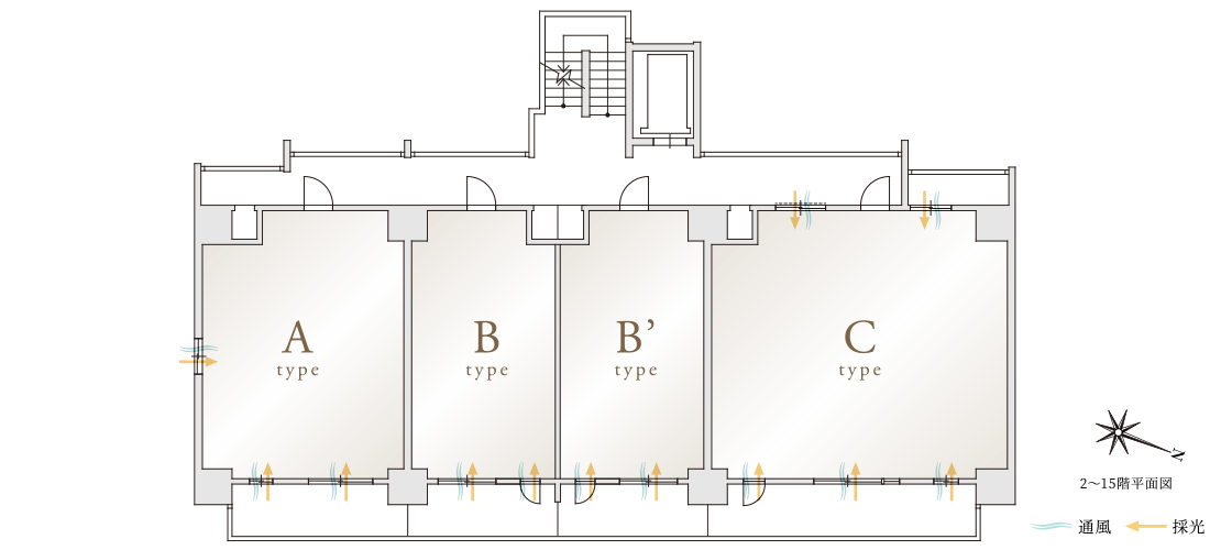 1フロア4邸・角住戸率50%※の住戸配置を実現。
