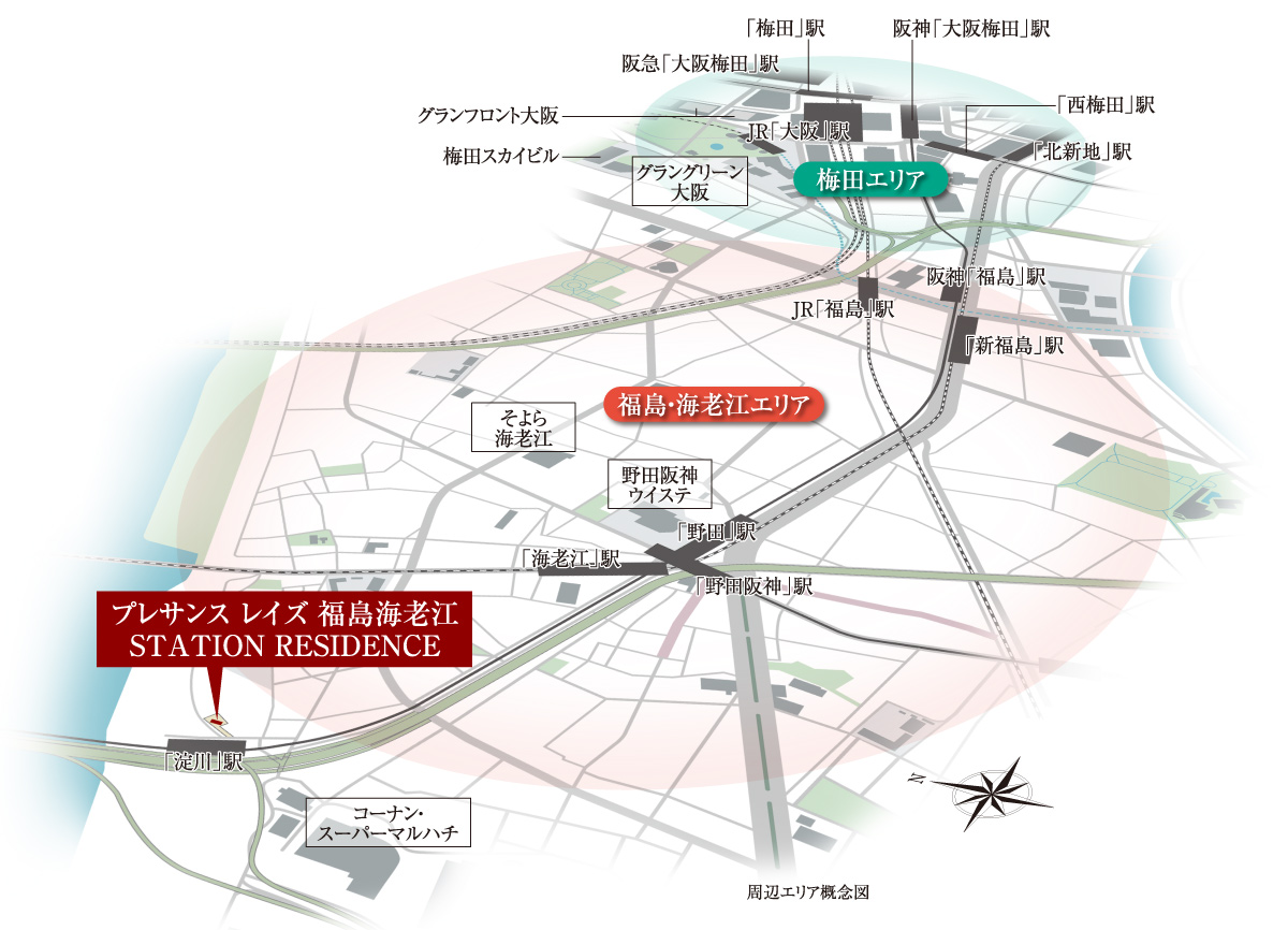 阪神本線、Osaka Metro、JR2路線の計4路線※1を利用できる利便立地。