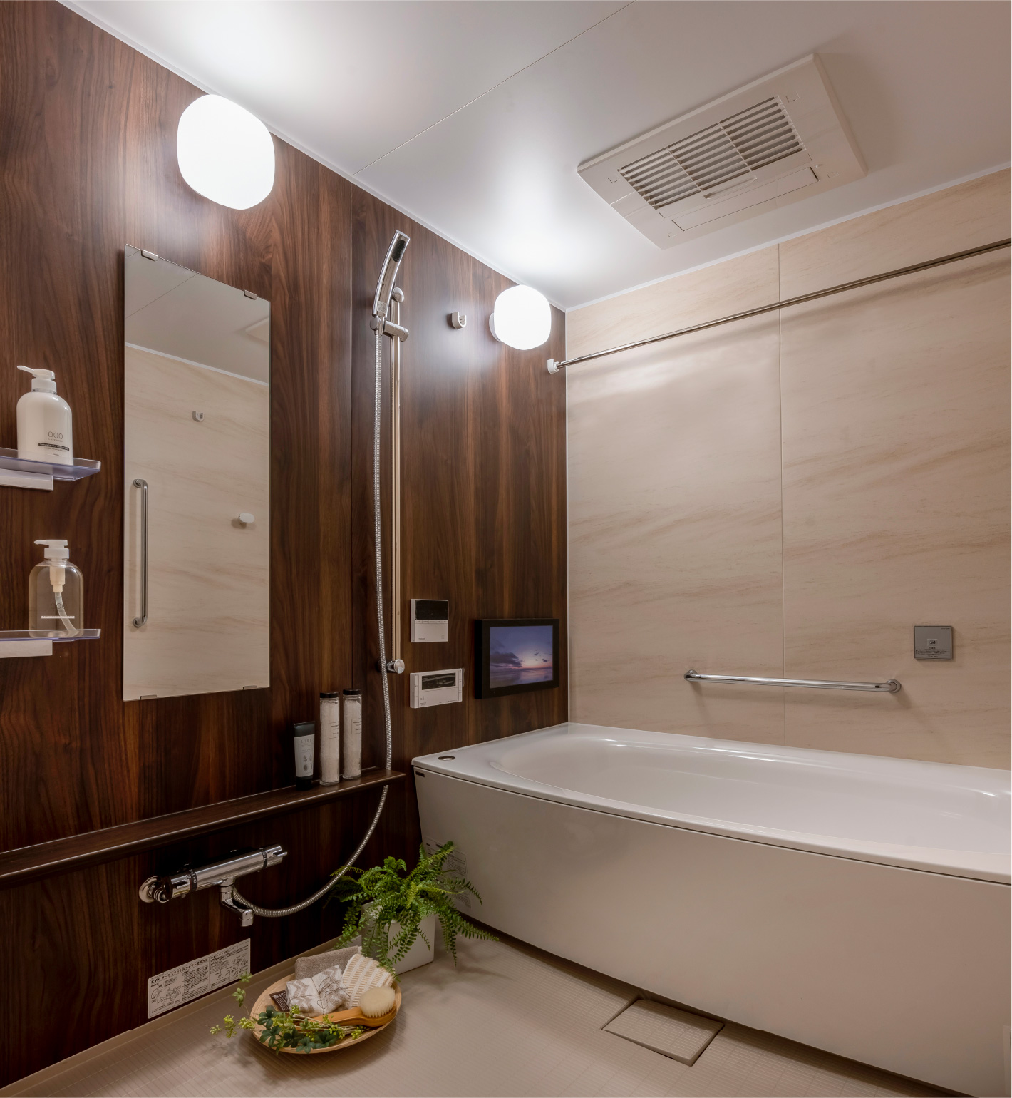 ※掲載の写真はモデルルームの浴室テレビで、先行オプション対応(有償)となります。