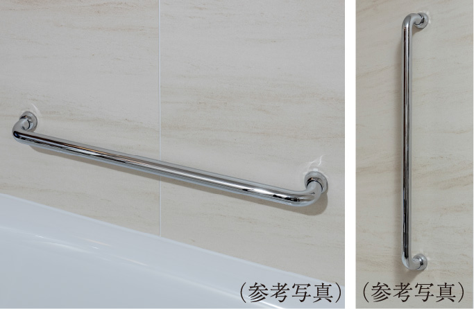 入浴中や立ち座りの際に体を支えられるよう、手摺を設置。ご年配の方やお子さまの安全な入浴への配慮です。