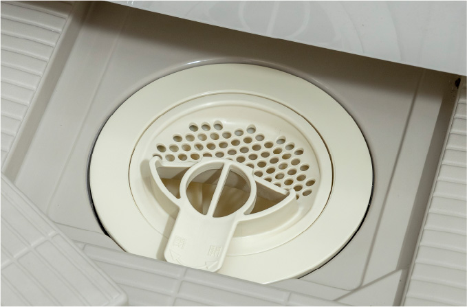 浴室の排水口には、髪の毛を絡みにくくしたフィルターを採用。排水口にたまった髪の毛もフィルターをひっくり返すことで簡単に捨てられます。