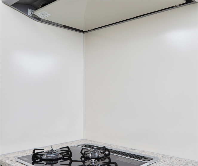 キッチン周りに優雅さと高級感をもたらすホーローパネルが採用されています。