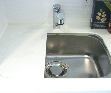 清潔で耐久性に優れた人造大理石製のカウンタートップ。
