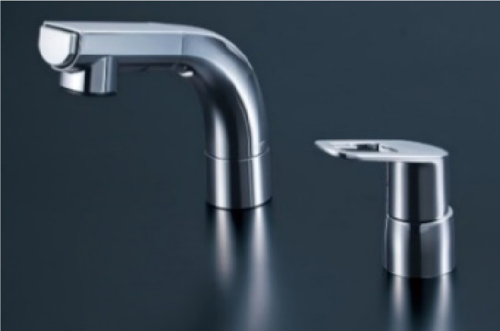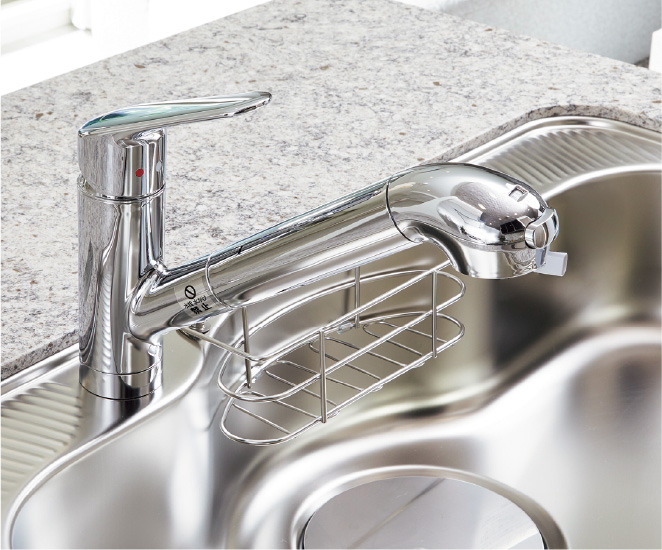吐水口部を引き出してボウルのお掃除ができる便利な伸縮ノズルを採用。スタイリッシュなデザインも印象的。