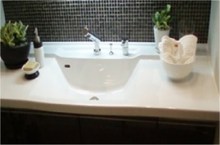美しさが映える人造大理石仕様のボウル一体型洗面カウンター。継ぎ目がないのでお掃除がしやすく清潔感も保てます。