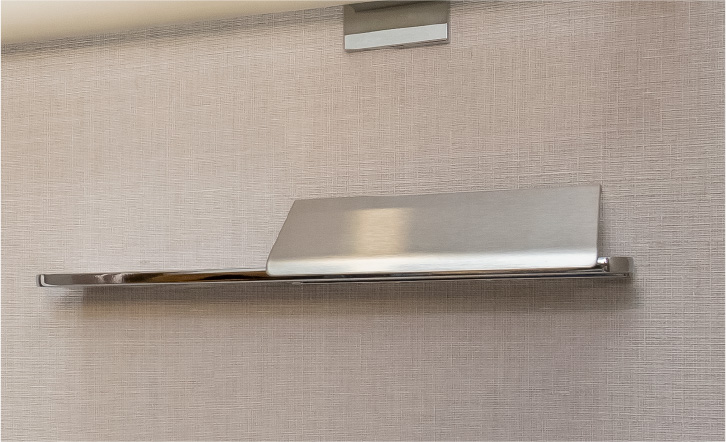 錆びにくい素材でシンプルなペーパーホルダーは小物置付で、ちょっとした小物や持ち物を置くのに便利です。