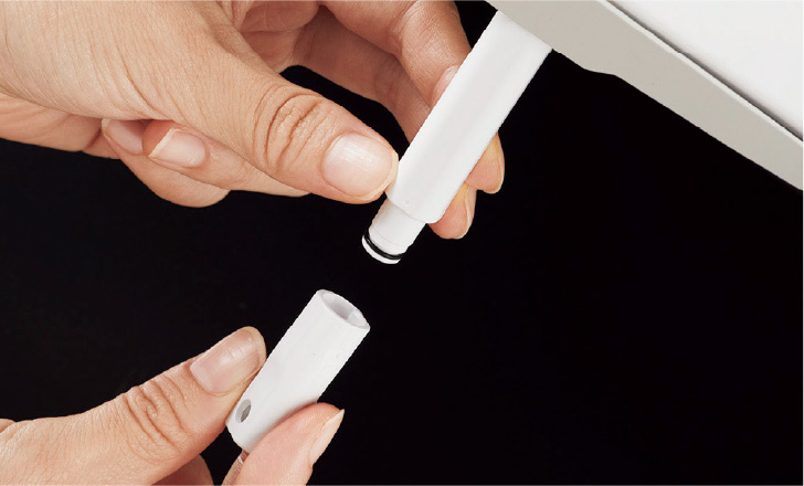 ノズルの先端を取り外して簡単にお掃除、交換ができます。