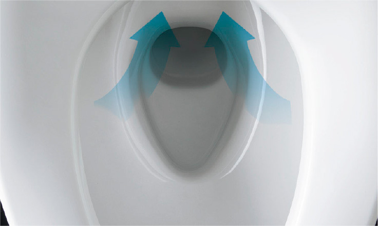 着座すると脱臭開始。より強力に、においを吸引します。スイッチ操作でさらに強力脱臭。