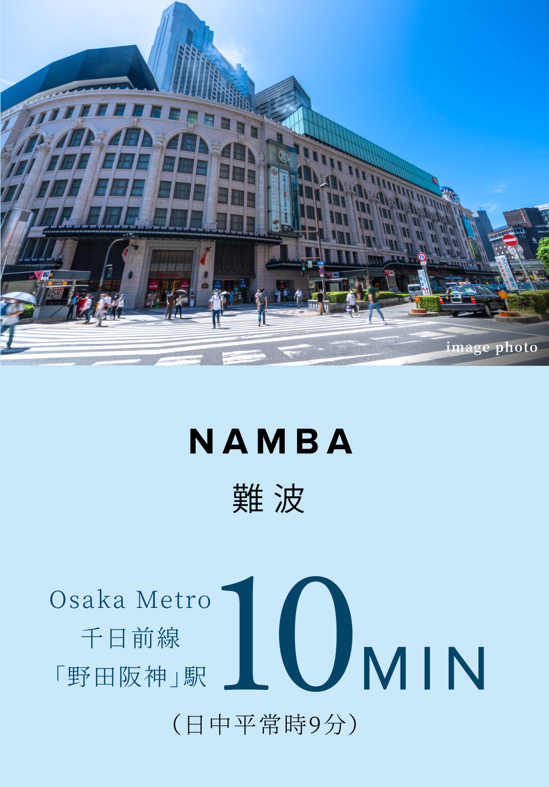 阪神本線「野田」駅(徒歩7分/現地より約520m)から急行でわずか1駅で「大阪梅田」駅へ直結する圧倒的アクセス性。