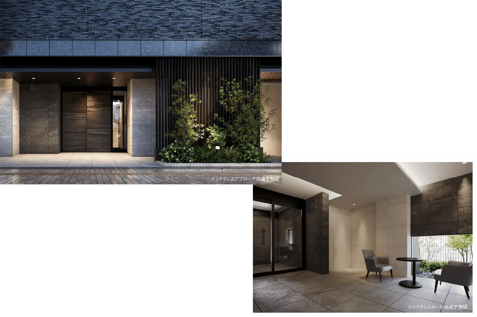 ※掲載の外観完成予想図・エントランスホール完成予想図、エントランスアプローチ完成予想図は図面を基に描き起こしたもので、外観・外構・植栽・色彩・照明等は実際とは異なる場合がございます。行政官公庁の指導、施工上の都合および改良等のため設計・仕様・外構工事等に変更が生じる場合があります。共用部及び建物の形状・色調等に変更が生じる場合がございます。また、現地周辺の建物等を省略して描いております。