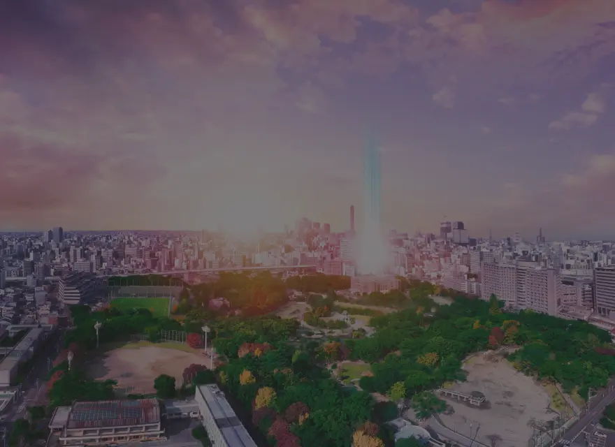 ※掲載の航空写真は2024年12月に撮影したものにCG処理を施した画像を合成したもので実際とは異なります。光の柱は物件のおおよその位置を示すためのものであり、建物の高さや敷地の規模を示すものではありません。