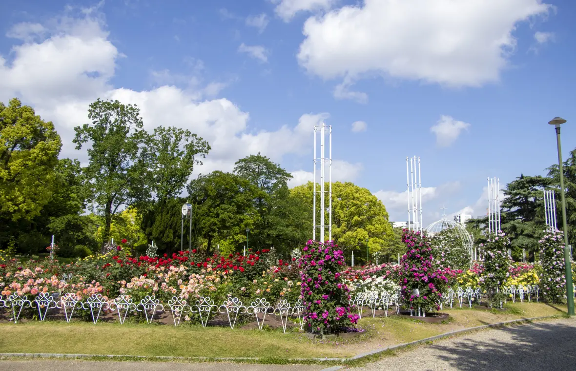 バラや花しょうぶが園内を彩ります。 -