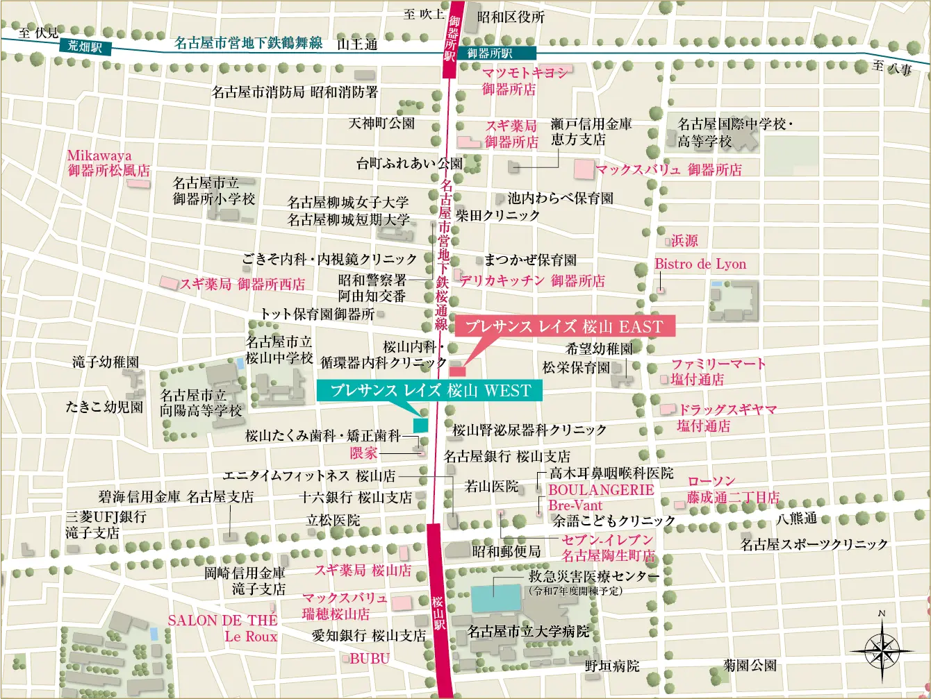 ※徒歩分数は80mを1分として計算した概則時間で、端数は切り上げています。