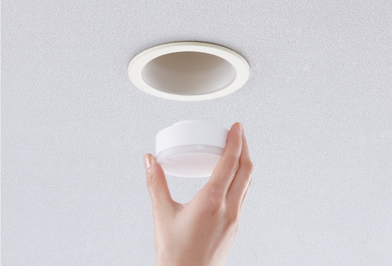 本物件では、住戸内のダウンライト照明に「LEDフラットランプ」を採用。簡単にLEDランプの取替ができ、ランプを交換するだけで、ライフスタイルに合わせて明るさ・光色・配光を変えられます。ランプは安心の5年保証です。
