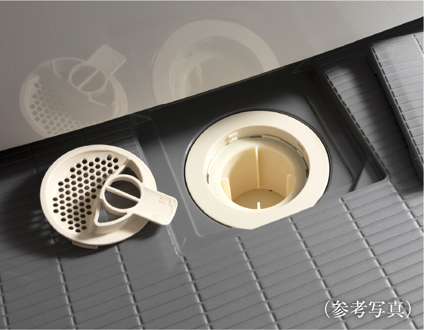 浴室の排水口には、髪の毛を絡みにくくしたフィルターを採用。排水口にたまった髪の毛もフィルターをひっくり返すことで簡単に捨てられます。