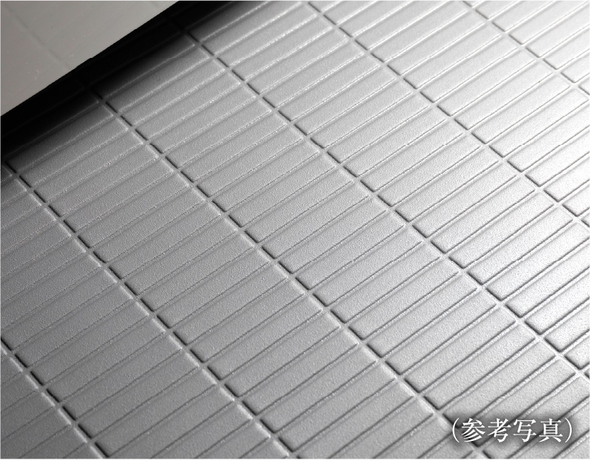 切り出した石をキチンと連続してそろえたようなデザイン。水の表面張力を壊す効果があり、乾きやすく、お掃除がしやすい床です。