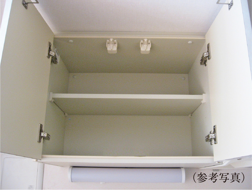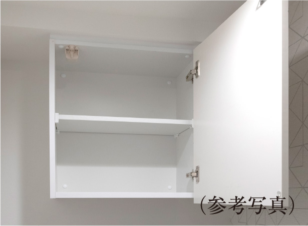 ペーパーストックや洗剤の収納に便利な吊戸棚も設置しています。