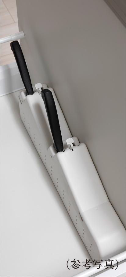 レバーを上下させることでロックと解除ができる包丁差し。最大4本収納可能です。