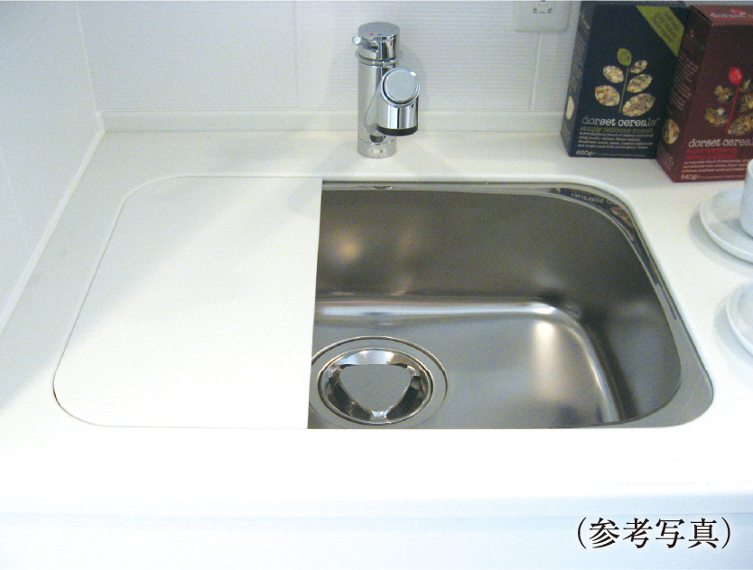 調理スペースを確保するため、人造大理石プレートを採用。シンクと一体型ではないため、自由に取り外すことが可能。スペースを有効にお使いいただけます。