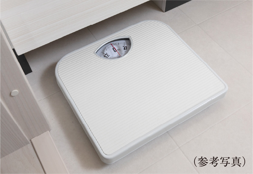 置き場所に困るヘルスメーターを、洗面化粧台の下にすっきり収納できます。