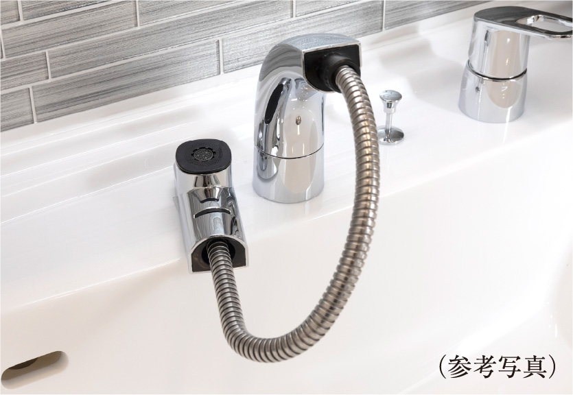 吐水口部を引き出してボウルのお掃除ができる便利な伸縮ノズルを採用。スタイリッシュなデザインも印象的。
