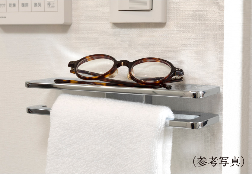 タオルリングには、眼鏡やネックレスなどを一時的に置ける小物置を設けました。