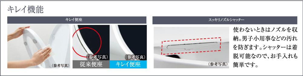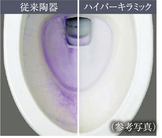 便器高硬度な表面平滑と銀イオンの力で、キズ汚れや、細菌の繁殖を抑制する「ハイパーキラミック」を採用。トイレを清潔に保ちます。