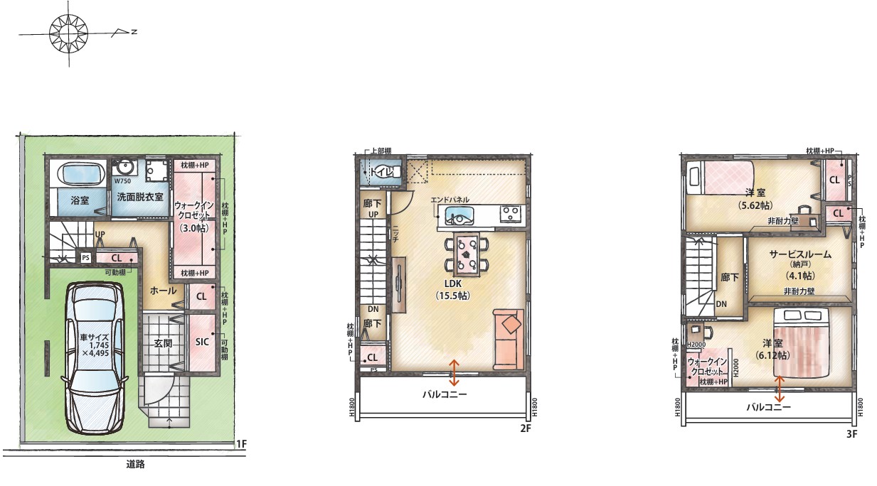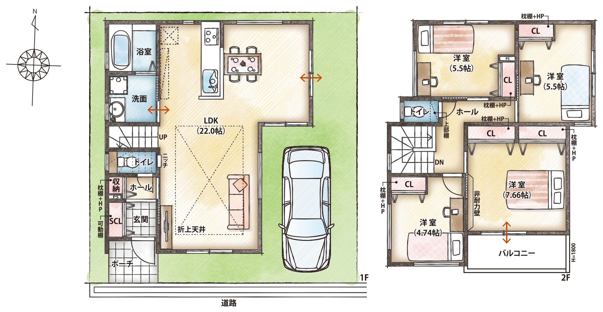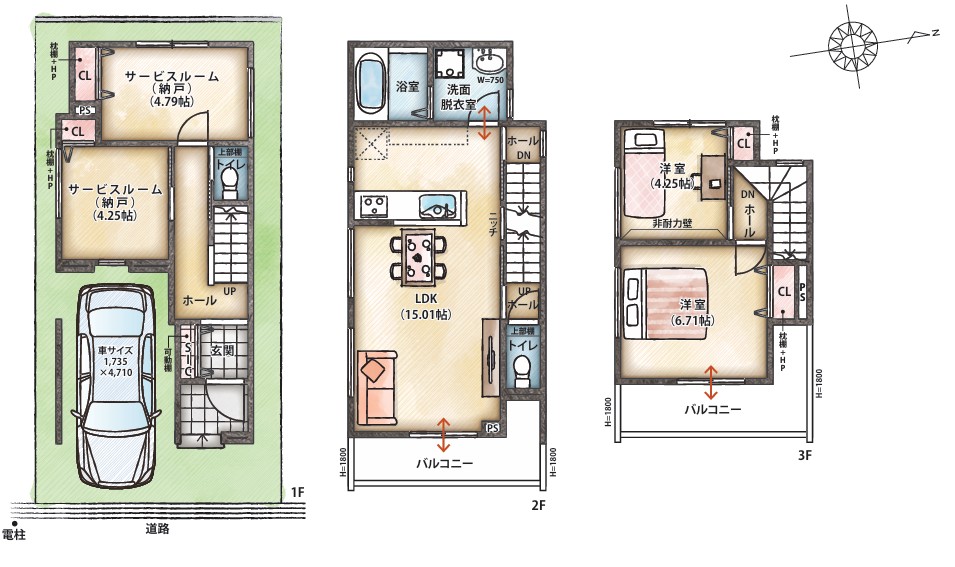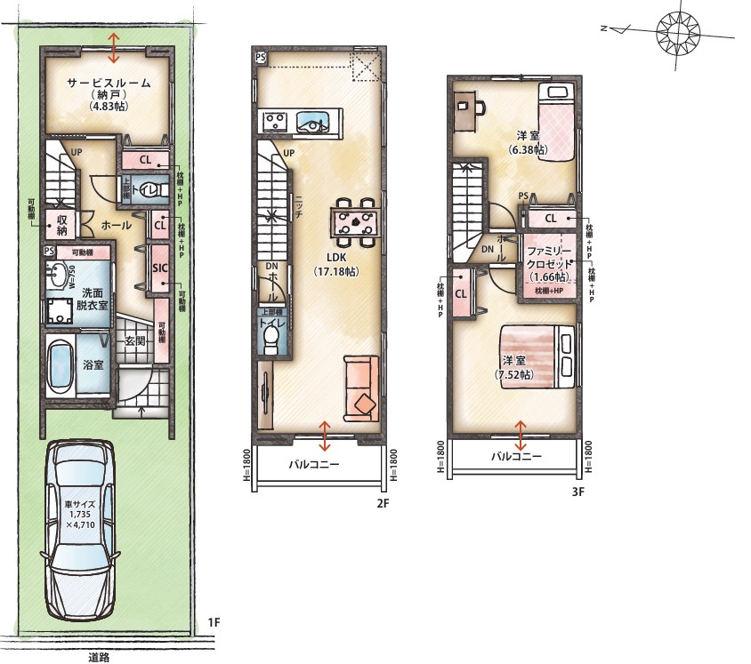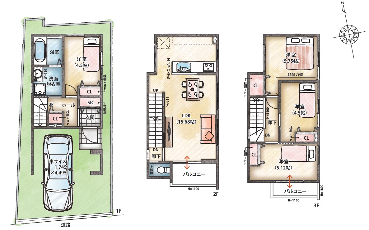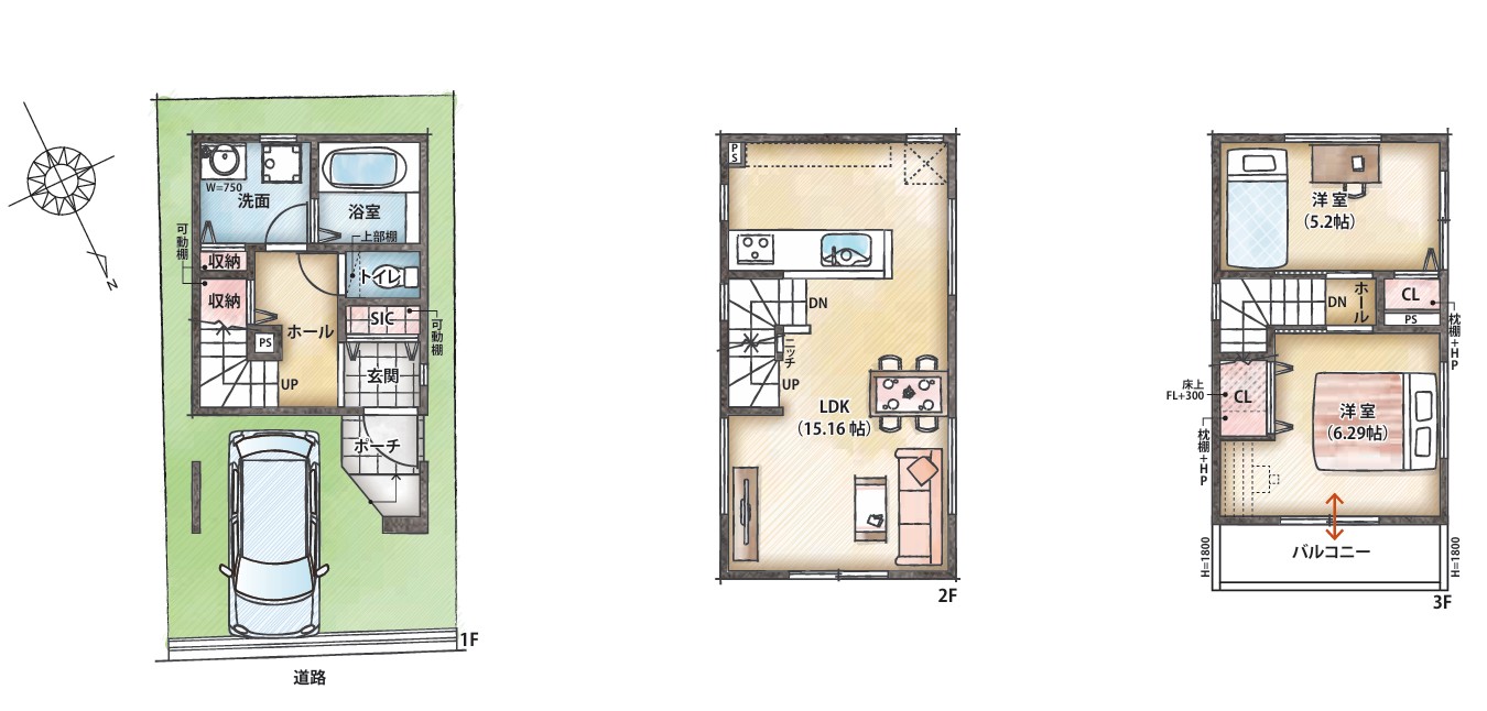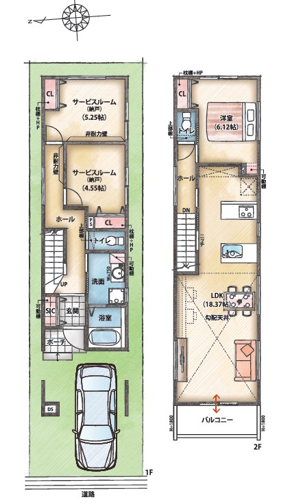 | 建物 94.15㎡ ~ 95.98㎡ | 土地 97.48㎡ ~ 119.9㎡ | |